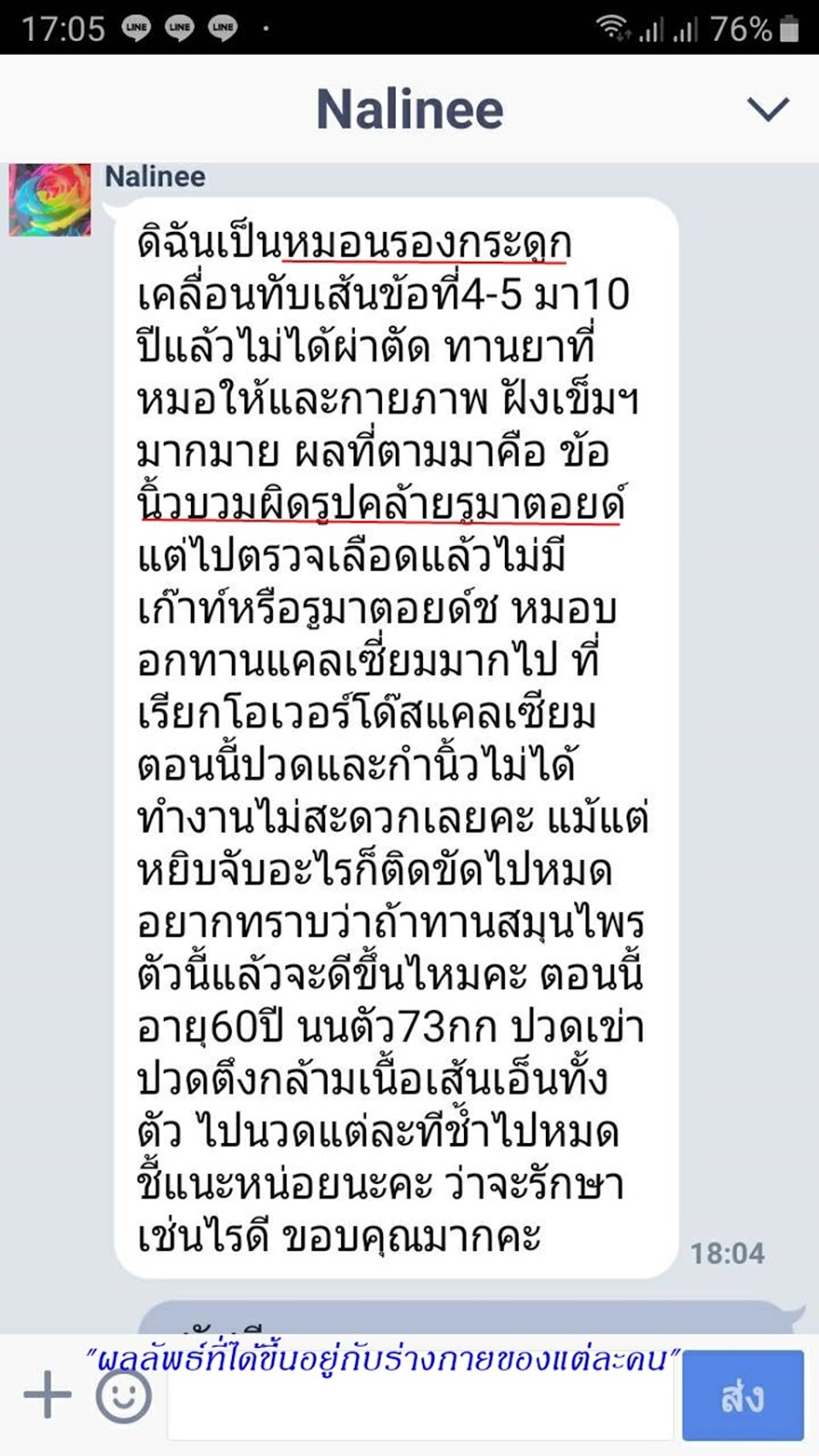 " ผลลัพธ์ที่ได้ขึ้นอยู่กับสภาพร่างกายของแต่ละบุคคล"