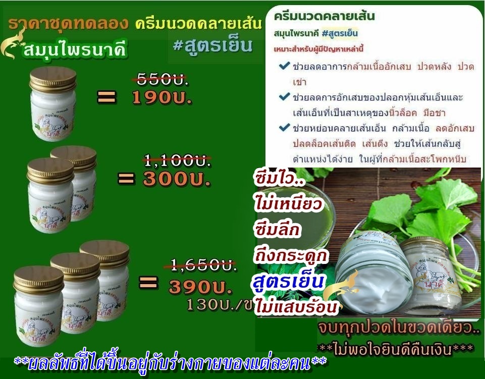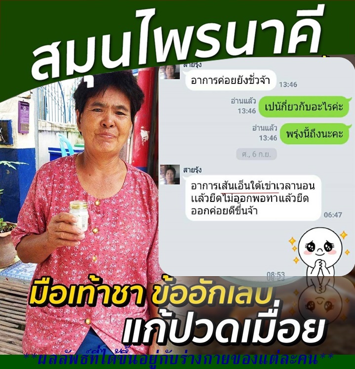 ชนิดแล้ว แต่ก็ไม่ดีขึ้น ฉีดยาประจำแทบทุกเดือน มีแต่ทรง หลังจากหมดฤทธิ์ยา ก็กลับมาปวดเมื่อยตามร่างกายอีก ที่ผมเสาะหายากิน เพราะผมต้องผ่าฟืนทุกวัน เพื่อมาทอดกล้วย เมื่อผมสั่ง “สมุนไพรนาคี " มากินเพียงแผงแรก ก็เห็นผลแล้ว มีอาการดีขึ้น ผมเลยให้แม่บ้านและลูกสาวของผมกินกันทุกคน
