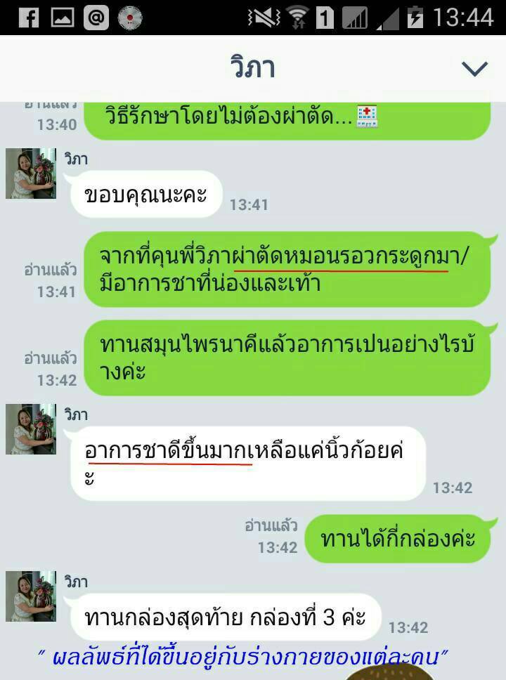 ก็ดีขึ้นเยอะเลย ไม่ปวด จากที่ต้องไปนวดก็ไม่ได้ไปแล้ว เขาบอกว่า ดีขึ้นในกล่องเดียว ก็ดีขึ้นจริงๆคะ น่าจะอีกสักกล่องคงหาย ต้องขอบคุณสมุนไพรตัวนี้จริงๆคะ "